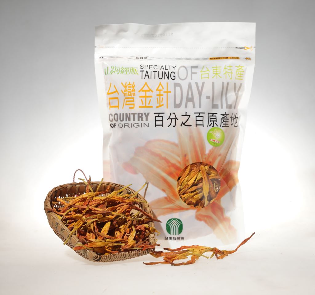 金針又名萱草、忘憂草,其花曬乾後極為實用的金針菜,以顏色鮮明為上品,台東縣的金針,全數分布在海拔800~1000公尺之山坡上,歷史悠久,由於滋味鮮,每年產量均供不應求。金針長久以來即是中國菜湯料理中之最佳佐料,營養價值高,含豐富胡蘿蔔素及鐵、鈣、磷、鉀、維他命C等,堪稱蔬菜類中一級廉價補品。