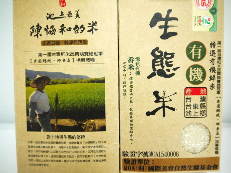*因池上地區無污染性工業工廠進駐,水質及土壤本質先天優良且後天控制得宜,所採用的自然農法耕作的稻米,可說是最健康的有機米、再加上經由全國第一屆米質競賽總冠軍邱垂昌先生,擔任本專業區輔導員、指導農民栽種,讓大家吃到具冠軍米水準的有機米。