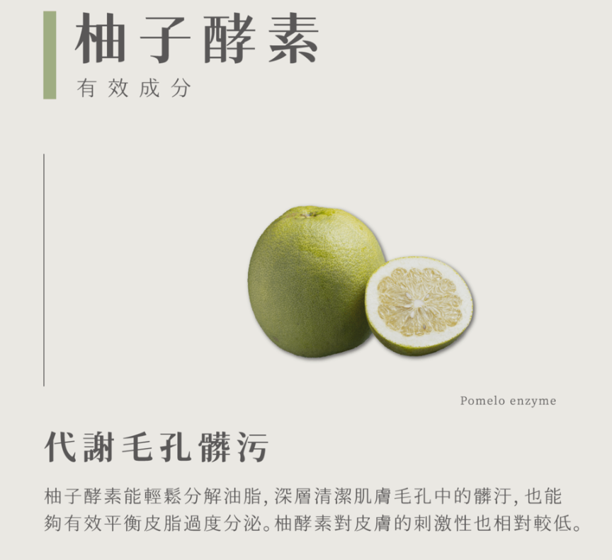 蘊含珍貴柚酵素,深層清潔幫助代謝。