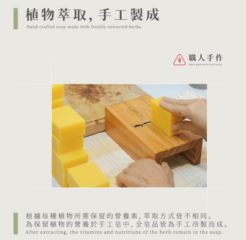 ※不含硬化劑的手工皂,較容易溶於水,平常未使用時請保持皂體乾燥或讓皂立起來晾乾。