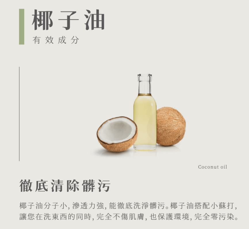 椰子油分子小滲透力強,具有深層潔淨的效果。
