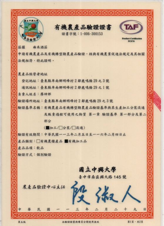 ◎有機證書: