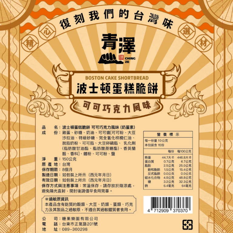 青澤-波士頓蛋糕脆餅(可可巧克力風味)