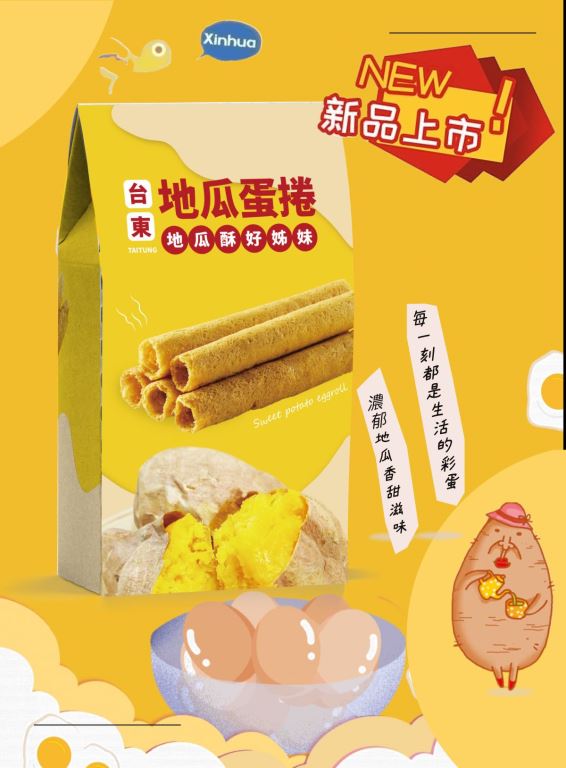 製作出來的地瓜蛋捲,不只視覺效果滿分、還充滿濃郁的地瓜香氣~超涮嘴!