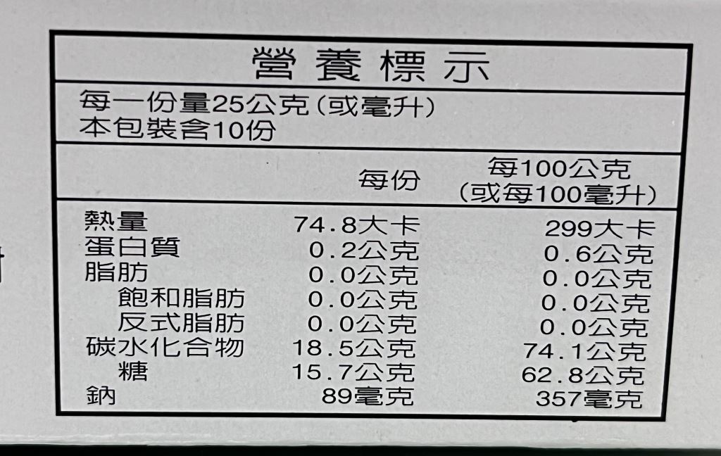 糖 :24.0公克