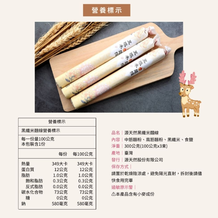 成分: 中筋麵粉、高筋麵粉、黑纖米、食鹽