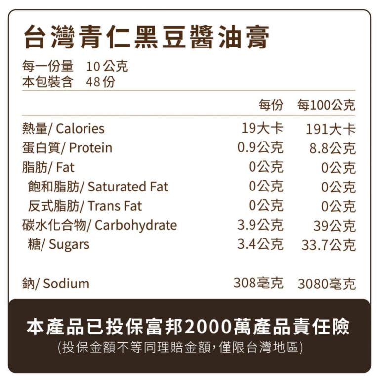 成分:黑豆 (台灣)、水、蔗糖、海鹽、糯米、酵母萃取物