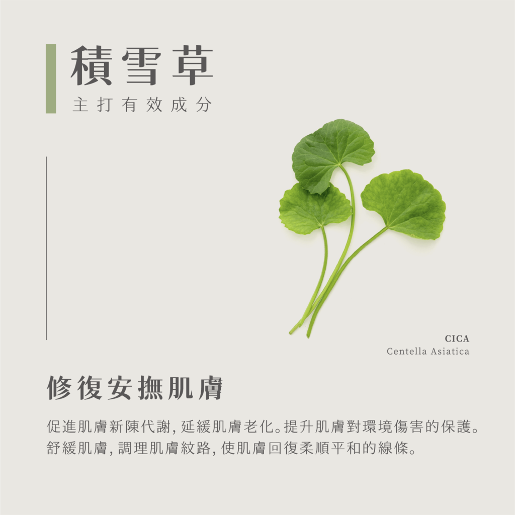 成份:積雪草純露、Cetanol、Sodium Lactate、Glyceryl Monostearate、Glyceryl Stearate、Myristamide