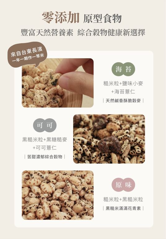 成分:長濱1號一等米(糙米粒+黑糙米粒)、糙米麩。