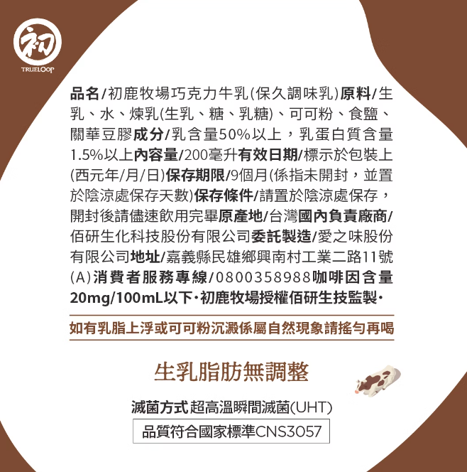 原料:生乳、水、煉乳、可可粉、食鹽、關華豆膠。