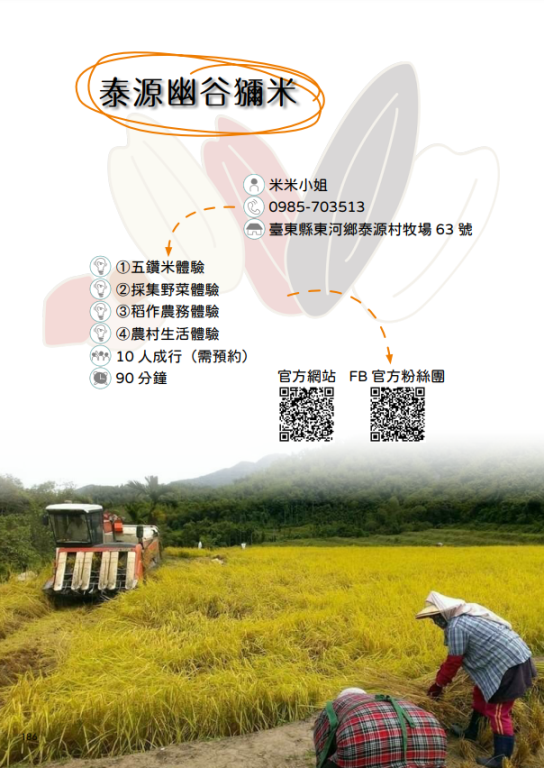 【農遊體驗行程】泰源幽谷獼米-五鑽米、採集野菜、稻作農務、農村生活體驗