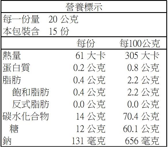 保存方式:避免日照及高溫、潮濕處。開封後請盡速食用完畢。