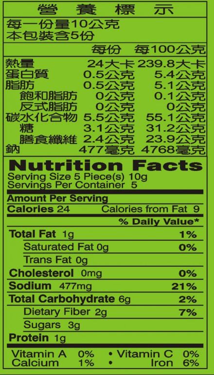 成份:梅子、鹽、葡萄糖、甜味劑(阿斯巴甜、紐甜、甘草萃)、綠茶香料、香料