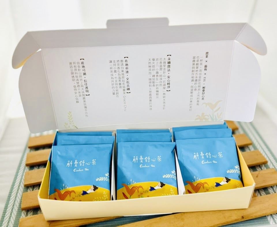 一盒茶裝的是金針與稻米,也是這幾年往返山海的心意。願你在忙完的一天,泡一杯給自己或和在乎的人慢慢喝,讓【解憂舒心茶】,陪你把生活放慢一點。
