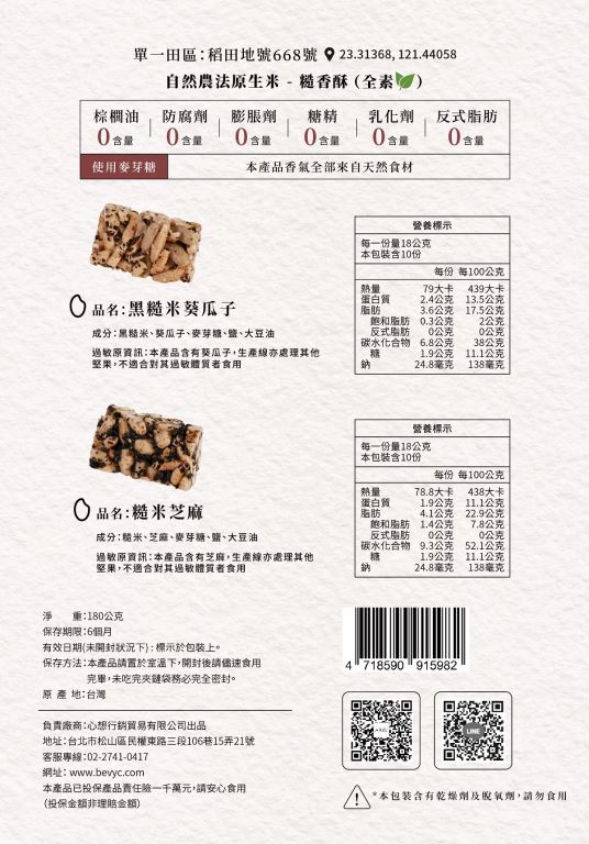 成分:糙米、芝麻、麥芽糖、鹽、大豆油