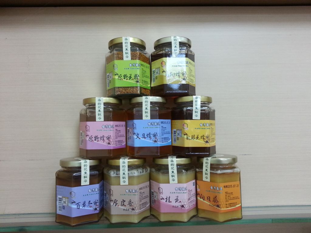 蜂蜜口味:龍眼花蜜、原野花蜜、文旦蜜、百草冬蜜、桂花結晶蜜、厚皮香結晶蜜、花粉