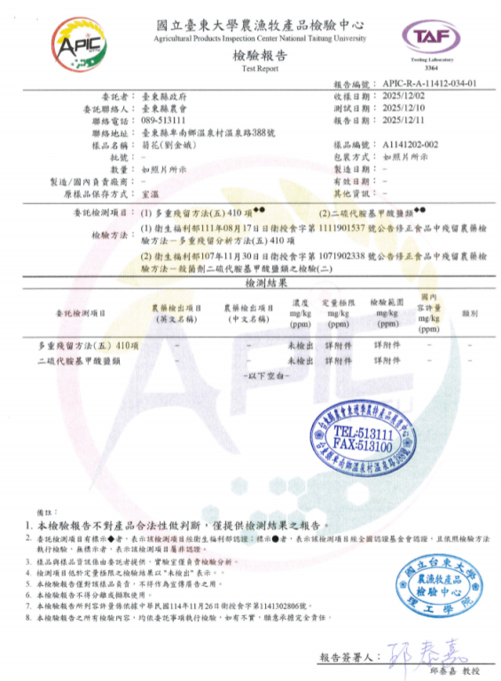 ★114年農藥殘留411項檢驗合格-未檢出 (報告日期:2025/12/11,本檢驗報告為一年有效)