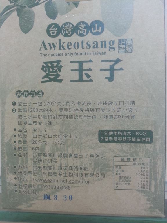 愛玉子為台灣特有之作物,栽種需經7~8年之久,生長環境需大自然的濕氣及土壤之養份才足以蘊育愛玉子收成。